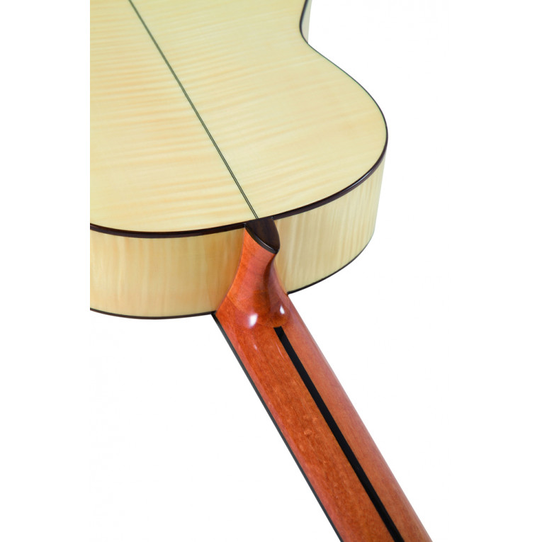 La nouvelle guitare Flamenco électro-acoustique Admira F4 EF est une guitare Flamenco qui, malgré son prix serré, est entièrement construite avec des bois sélectionnés de qualité. La guitare Admira F4 EF est une authentique guitare Flamenco espagnole fabriquée avec les meilleurs matériaux utilisés par la marqueAdmira. Elle de bonne fabrication et possède une bonne sonorité. La guitare Admira F4EF dispose d’une table d’harmonie en épicéa massif, d’un fond et d’éclisses en cyprès, d’un manche en cèdre avec un renfort en palissandre, de touches en ébène, d’un chevalet en palissandre, d’un liseré sur sa table d’harmonie et son fond de caisse, de cordes Savarez CJ500 et de mécaniques dorées. Sa finition est polie. Elle est équipée du système d’amplification Fishman Classic Blend.