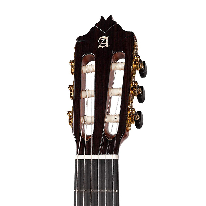 La guitare classique Alhambra 8P est une excellente guitare de niveau avancé. La guitare Alhambra 8P est pourvue d’une table massive en épicéa allemand, d’un dos et d’éclisses en acajou massif indien. La touche est en ébène et le manche est en cèdre renforcé par de l’ébène. Les bois sont séchés naturellement. Elle a deux filets incrutés en palissandre indien. Guitare de fabrication entièrement artisanale.