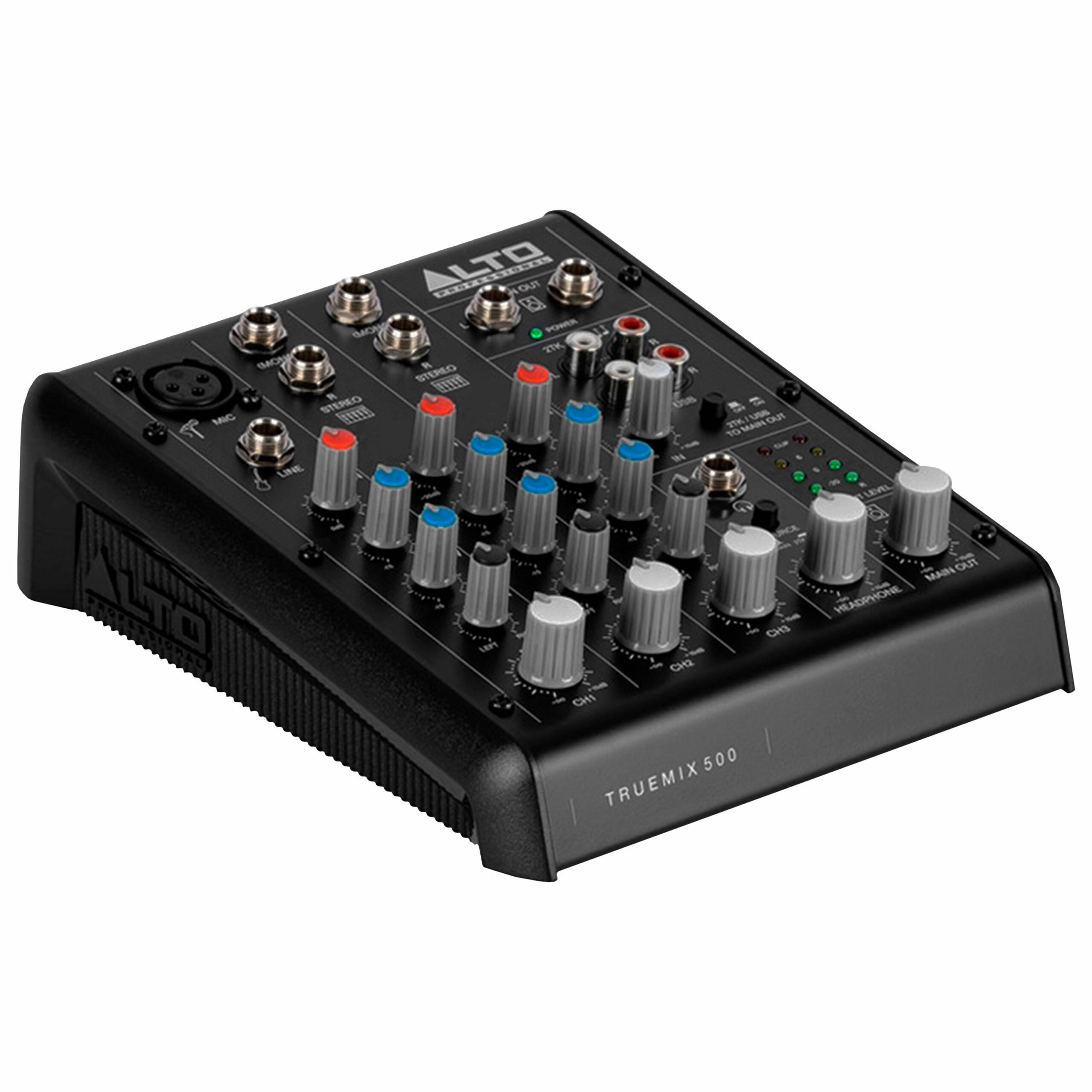 La TrueMix 500 d’Alto Professional est une table de mixage très compacte et polyvalente. Avec ses cinq canaux basés sur une voie micro et deux voies stéréo, associés à une interface USB pour l’enregistrement ou le retour audio provenant d’un ordinateur, la TrueMix 500 est idéale pour les projets d’enregistrement domestique ou les petits groupes. Modèle le plus compact et le plus accessible de la série TrueMix, la TrueMix 500 met à disposition l’essentiel pour réaliser des enregistrements de qualité et gérer de petits groupes, le tout à un tarif très accessible. Ce modèle propose cinq canaux d’entrées : un canal micro avec une entrée XLR doublée d’une entrée ligne au format jack, secondé par deux voies stéréo proposant deux entrées jack symétriques chacune pour connecter vos instruments niveau ligne, tels qu’un piano numérique ou un synthétiseur.