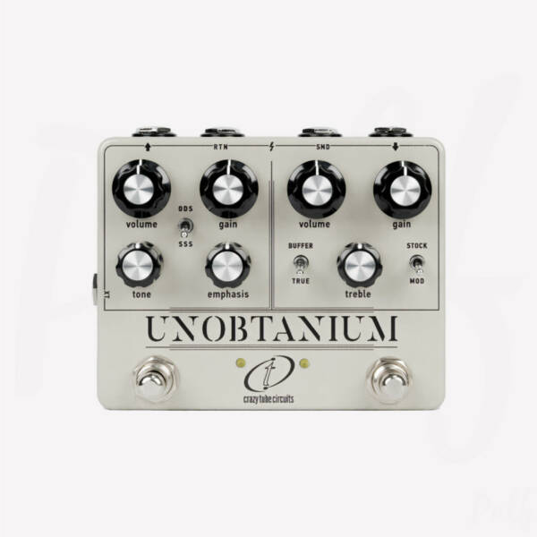 Ayant emprisonné le son de deux espèces rares d’overdrive dans une seule boîte, la pédale Crazy Tube Circuits Unobtanium dual met la sortie littéralement inaccessible d’une Klon et d’une Dumble sur votre planche en un seul coup. Cette double overdrive fournit deux canaux qui peuvent être déclenchés indépendamment ou empilés en série, tandis que la boucle FX passive signifie que vos pédales peuvent être insérées entre les deux sections. Le circuit interne double la puissance jusqu’à 18 Volts, garantissant une bonne marge de manœuvre et une réponse dynamique exceptionnelle. Chaque pédale Unobtanium est fabriquée avec soin en Grèce.