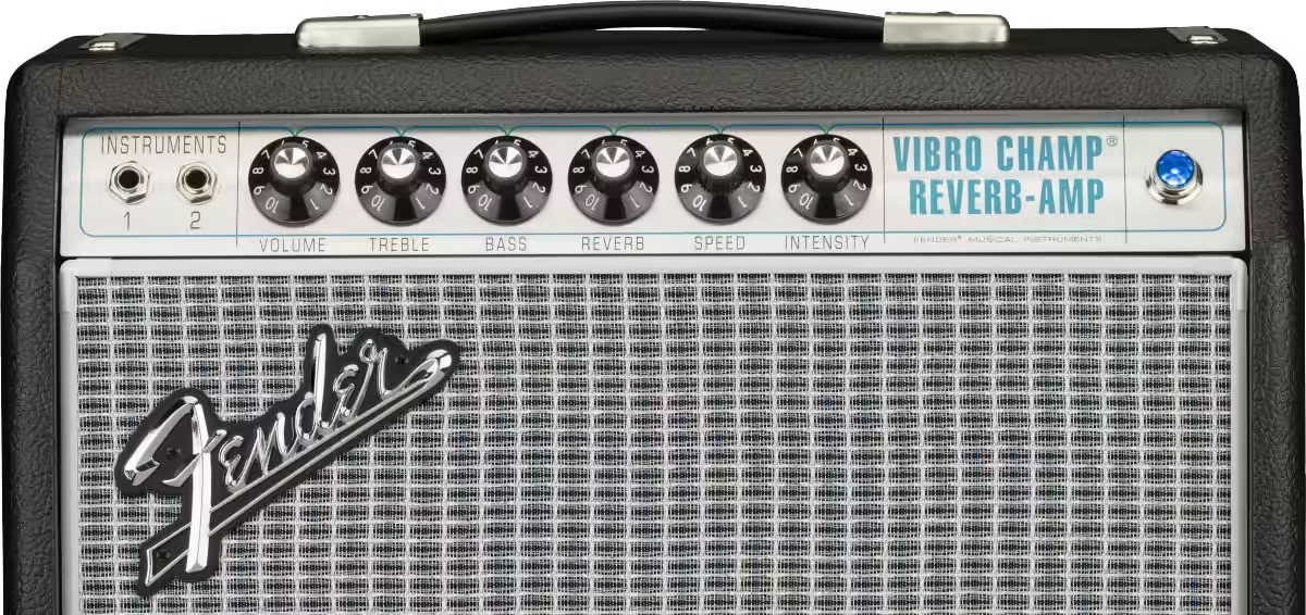 Le FENDER ’68 Custom Vibro Champ Reverb est une évolution du Champ original, agrémentée d’un haut-parleur de 10″ générant des basses fréquences plus étoffées et d’un circuit de réverbération type Hall.