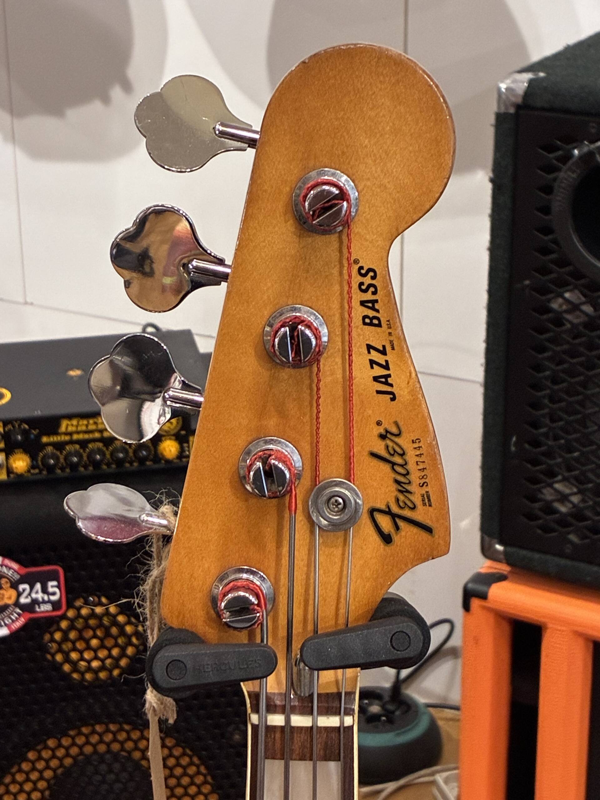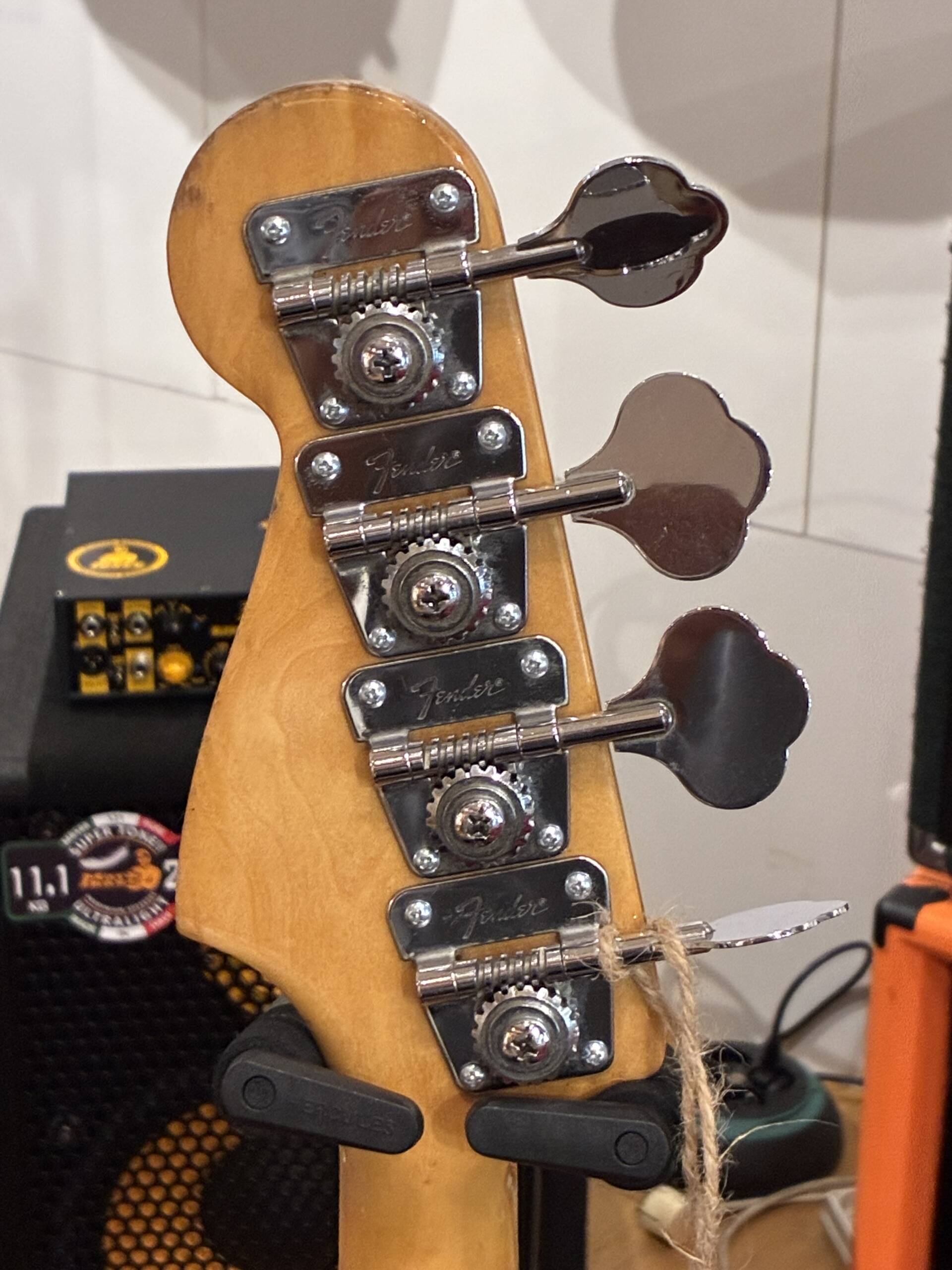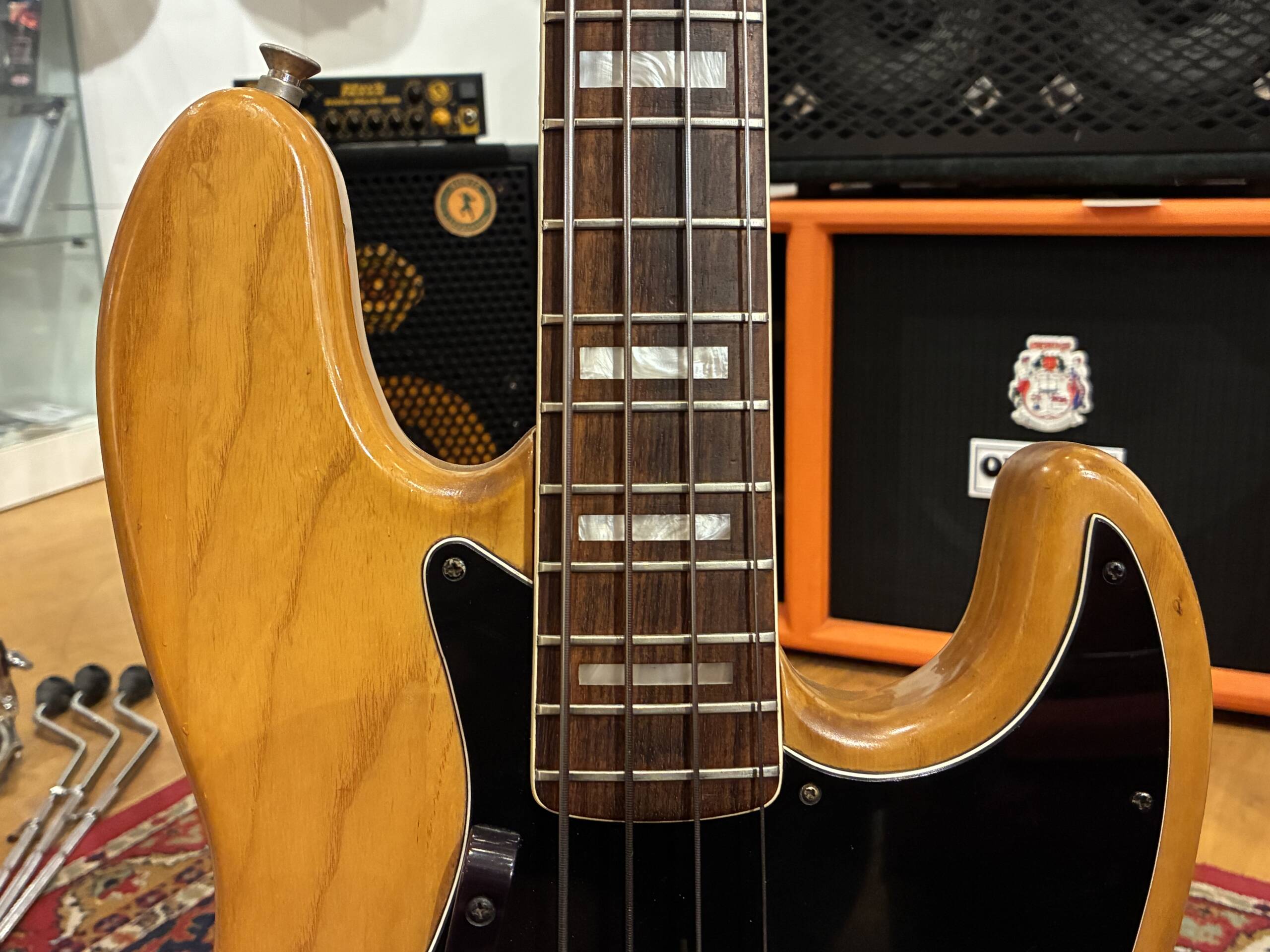Fender Jazz Bass 1978 – Un témoin authentique de la fin des 70’s. Avec ses 40 ans au compteur, cette Jazz Bass a conservé tout ce qui fait la légende du modèle : un manche confortable, des micros qui délivrent autant de rondeur que de mordant, et surtout ce grain typiquement vintage qu’on ne retrouve que sur les instruments de cette époque.