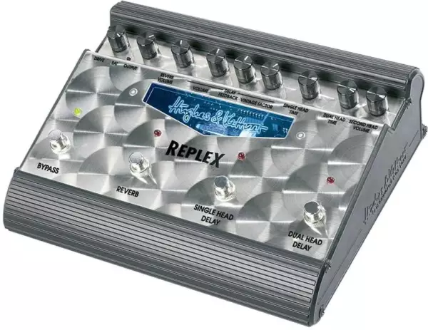 Le Hughes & Kettner Replex de la série Tube Tools est un effet réverbération/delay à effet tubulaire avec une touche vintage classique. L’unité d’effets complète combine le circuit à tube analogique ECC83 éprouvé avec une carte d’effets numériques pour fournir des sons authentiques provenant des mondes analogique et numérique. Grâce à la commande Vintage Factor, le son peut être modifié en continu, passant d’un délai numérique clair à un son de bande très convoité avec une distorsion caractéristique de la bande. De plus, le Replex dispose d’un mode Tête simple et d’un mode Tête double avec des commandes séparées pour le temps de delay et le volume des simulations des deux têtes.